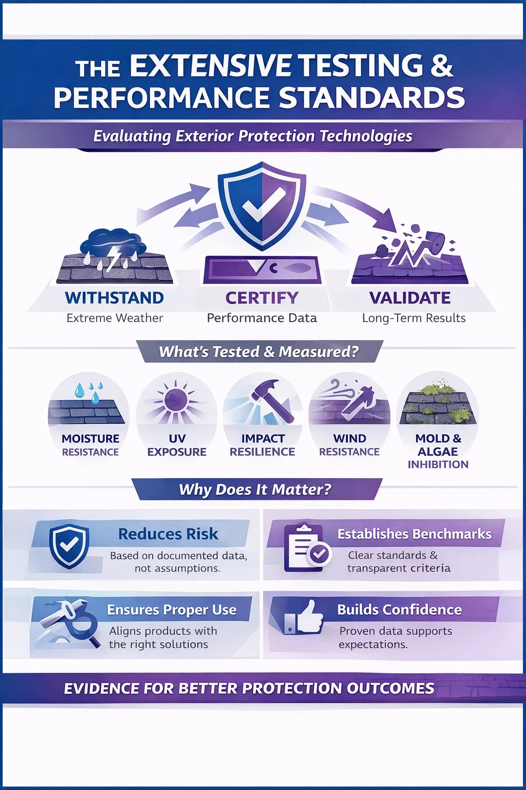 In multiple performance categories—including impact resistance, wind resistance, moisture protection, hydrophobic behavior, and biological resistance—the treated roof did not simply meet the minimum requirements. It exceeded them.