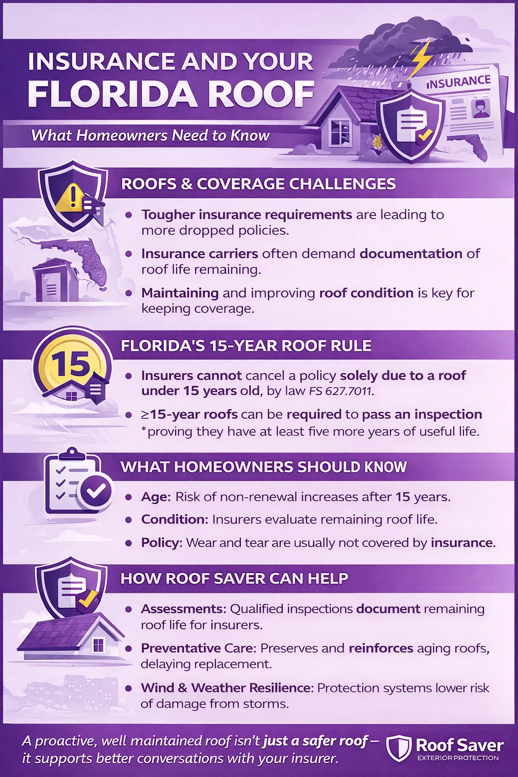 Florida’s homeowners insurance landscape has been changing rapidly, and roof condition plays a central role in coverage eligibility and renewal decisions. To make informed decisions, and to protect your home’s most important exterior surface, it’s essential to understand these rules and how proactive protection integrates with your insurance strategy.